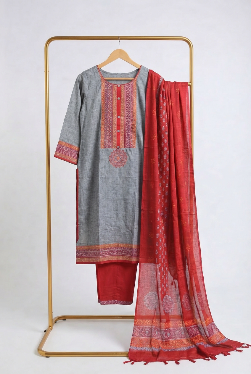 Be the first to review “Grey Red Contrast Salwar Kameez” Cancel reply