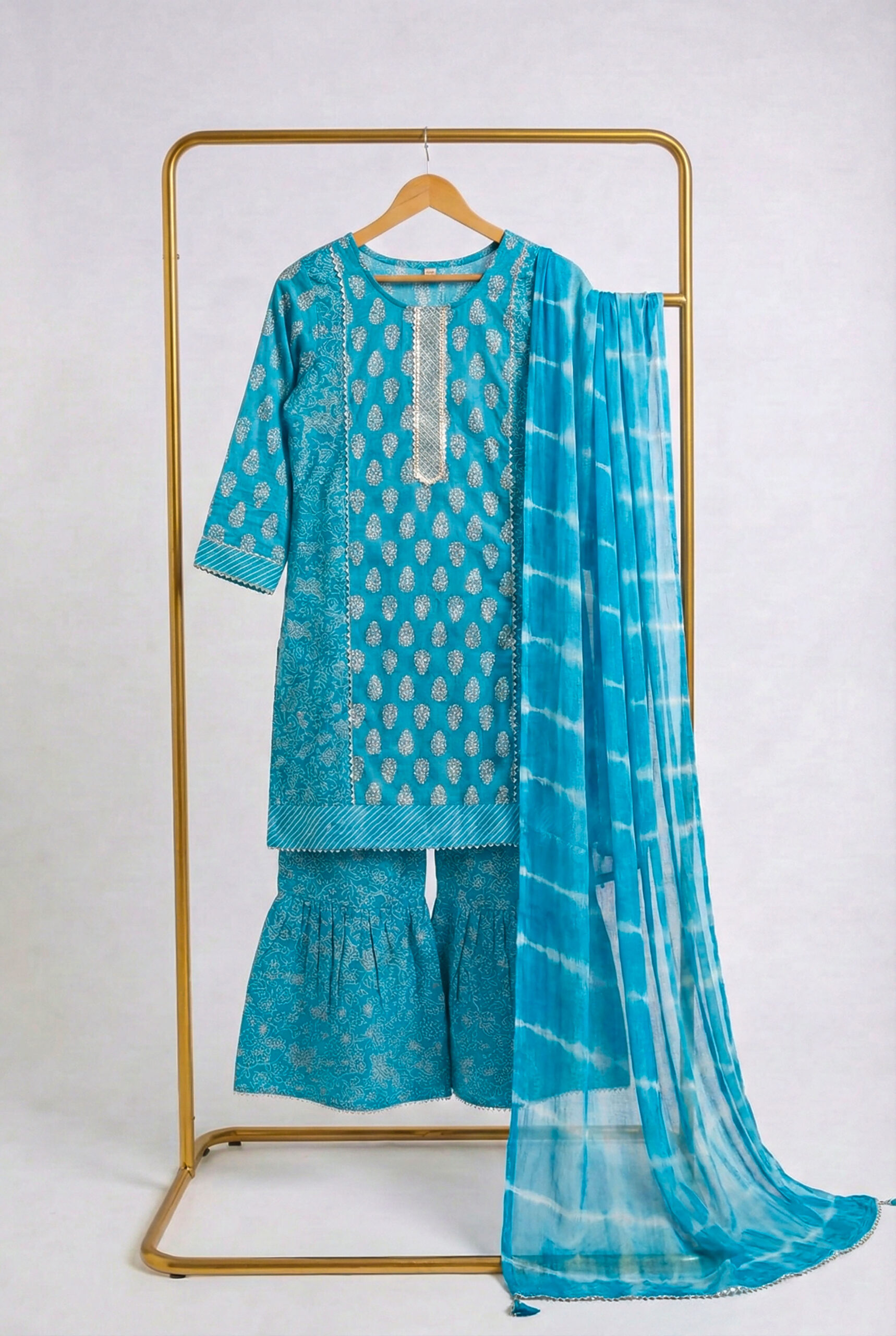 Be the first to review “Ocean Blue Printed Kurti Set” Cancel reply