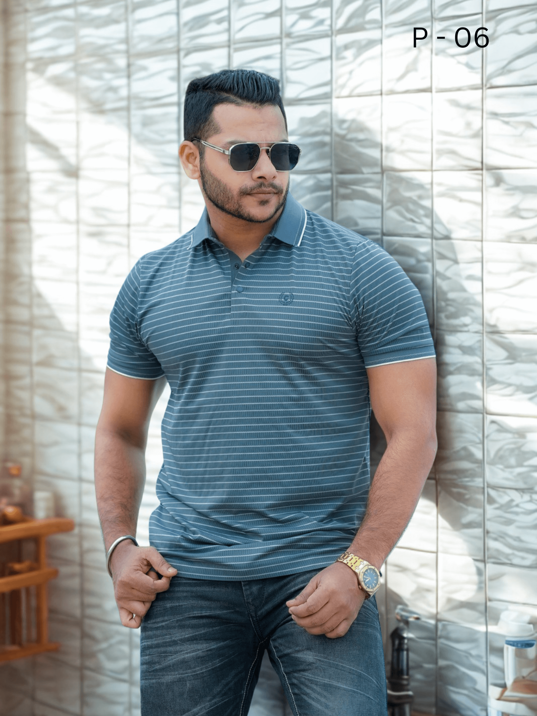 Premium Steel Blue Men’s Polo T-Shirt | P-06