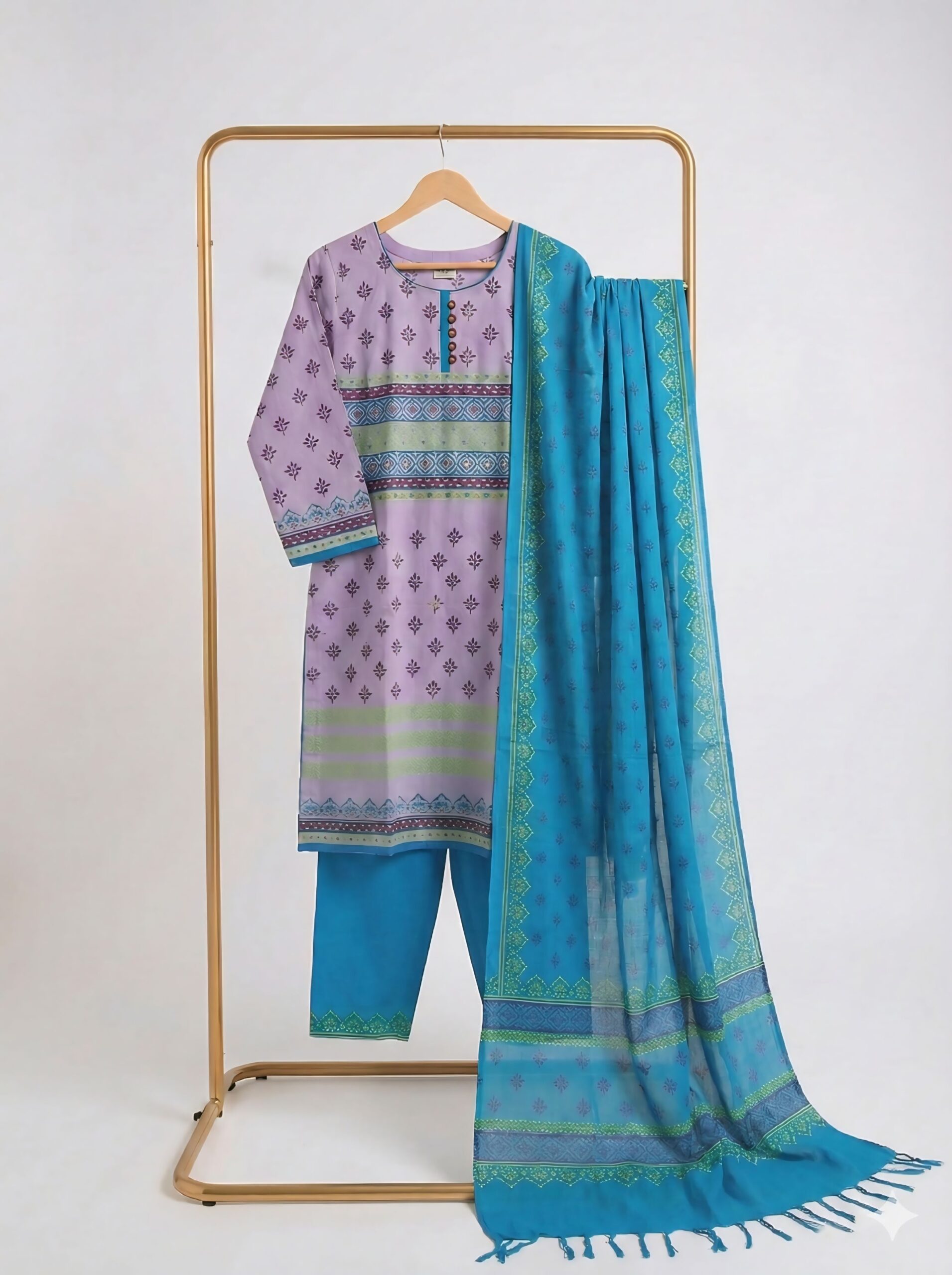 Be the first to review “Women’s Pastel Purple Printed & Embroidered Three Piece Set” Cancel reply