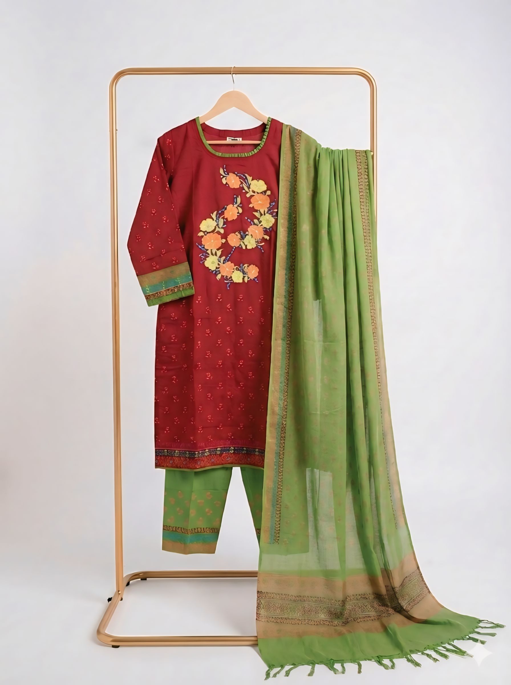 Tags: My Craft, Women’s Red Brown Printed & Embroidered Three Piece Set